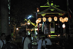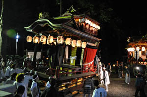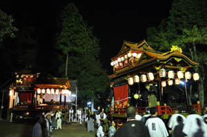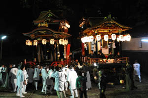 宵宮の夜、翌日の本楽のために各町の曳山は湯谷神社に
