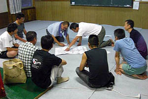 総代から今年の運行案の説明が行われ、それをもとに議論がなされます。